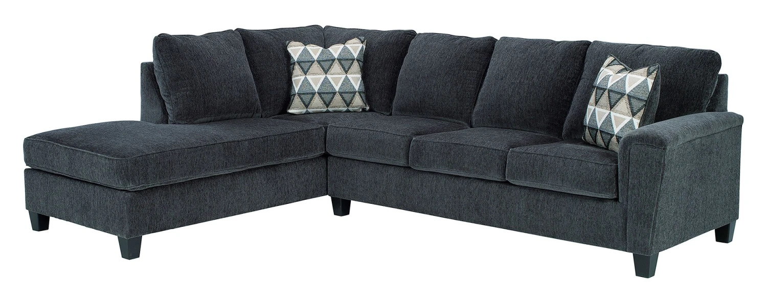 - OverviewIf you’re looking for a smokin’ hot look priced to entice, you’re sure to find this space-conscious, budget-conscious Abinger Sectional beautifully fits the bill. Covered in a smoke gray chenille upholstery loaded with plush texture, this less-is-more contemporary collection is dressed to impress with angled side profiling and track armrests wrapped with a layer of pillowy softness for that little something extra.