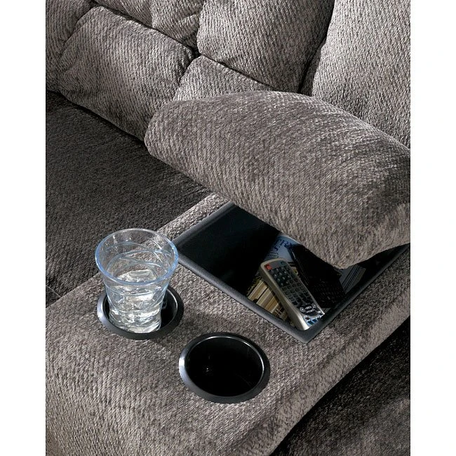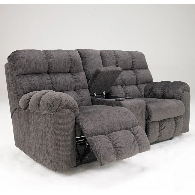 - OverviewFilling your home’s recreational area just got easier. The Acieona Slate Reclining Collection by Signature Design by Ashley Furniture features unique combination of motion features combined with stationary functions, makes it the perfect addition to your home. The sectional sofa s flow starts and ends with end reclining seats, drop down theater cup-holders, and hidden storage with exposed cup-holders