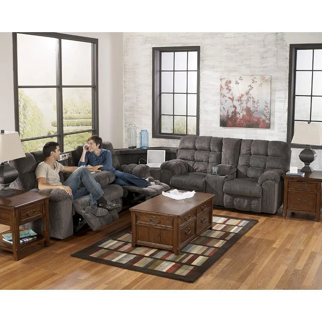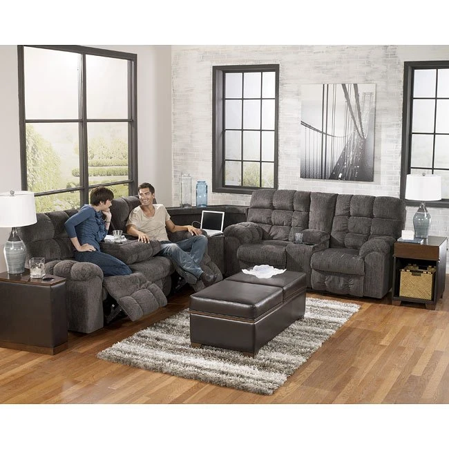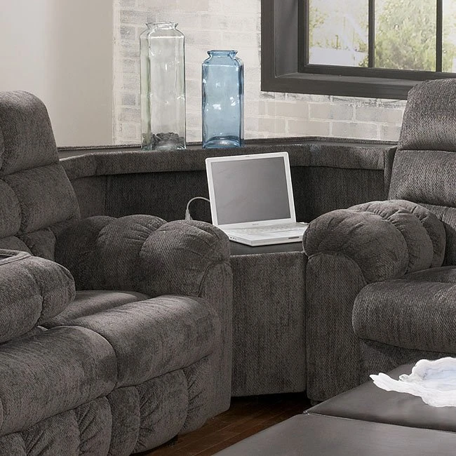 - OverviewFilling your home’s recreational area just got easier. The Acieona Slate Reclining Sectional Set by Signature Design by Ashley Furniture features unique combination of motion features combined with stationary functions, makes it the perfect addition to your home. The sectional sofa s flow starts and ends with end reclining seats, drop down theater cup-holders, and hidden storage with exposed cup-holders