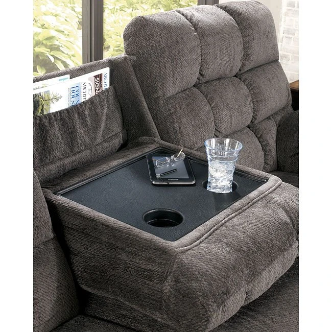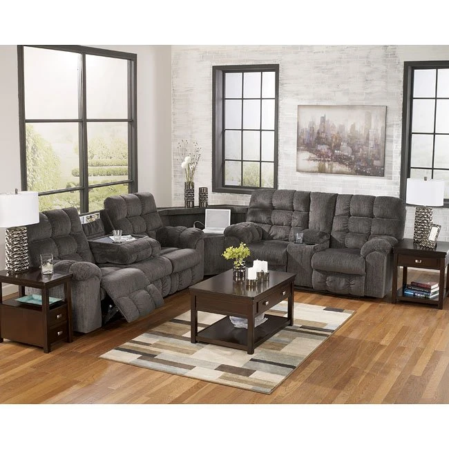 - Default Set Includes1 x Acieona Slate Reclining Sofa w/ Drop Down Table 1 x Acieona Slate Wedge 1 x Acieona Slate Reclining Loveseat w/ Console