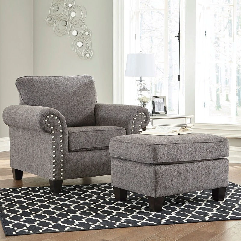 - OverviewA contemporary dream. The Agleno chair by BenchCraft checks off everything on your list. Designer profile is accentuated with roll arms and pewter-tone finished nailhead trim. Upholstered in a textured chenille, the feel is up to par with the look. Tapered accent legs finish off top-to-bottom style.