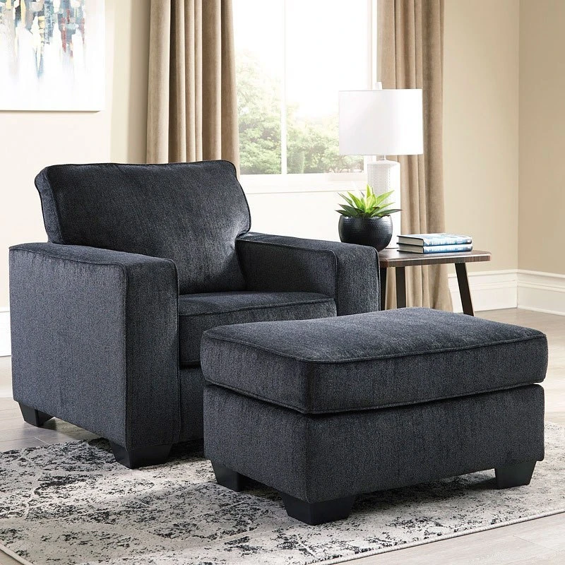 - OverviewIf style is the question, then the Altari chair by Signature Design is the answer. Clean-lined profile is beautifully contemporary. Upholstered in a plush chenille, it’s pleasing to the touch. Plump cushioning makes it even better to sit on for as long as you desire. Slate gray hue works with a variety of decor.