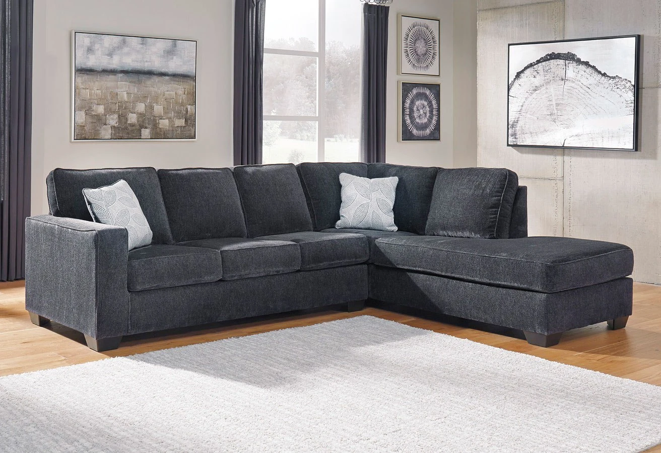- OverviewWith the rich color of the plush chenille upholstery fabric along with the thick supportive box style back and seating cushions, the Altari Slate Living Room Collection by Signature Design offers you the ultimate in comfort without sacrificing the stylish contemporary design you’ve been looking for. The sleek track arms and straight-line design is sure to feel at home in any living room environment.