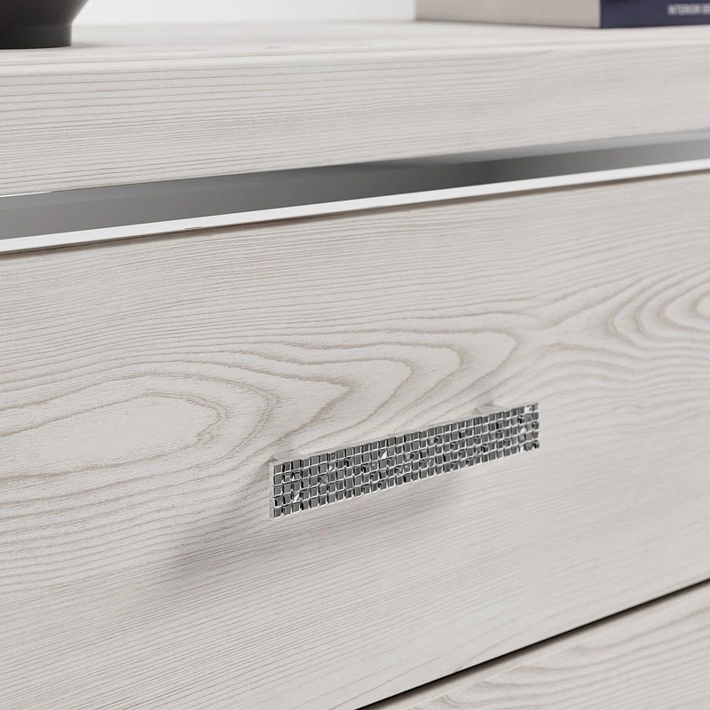 Large scale chrome-tone handles with mosaic details