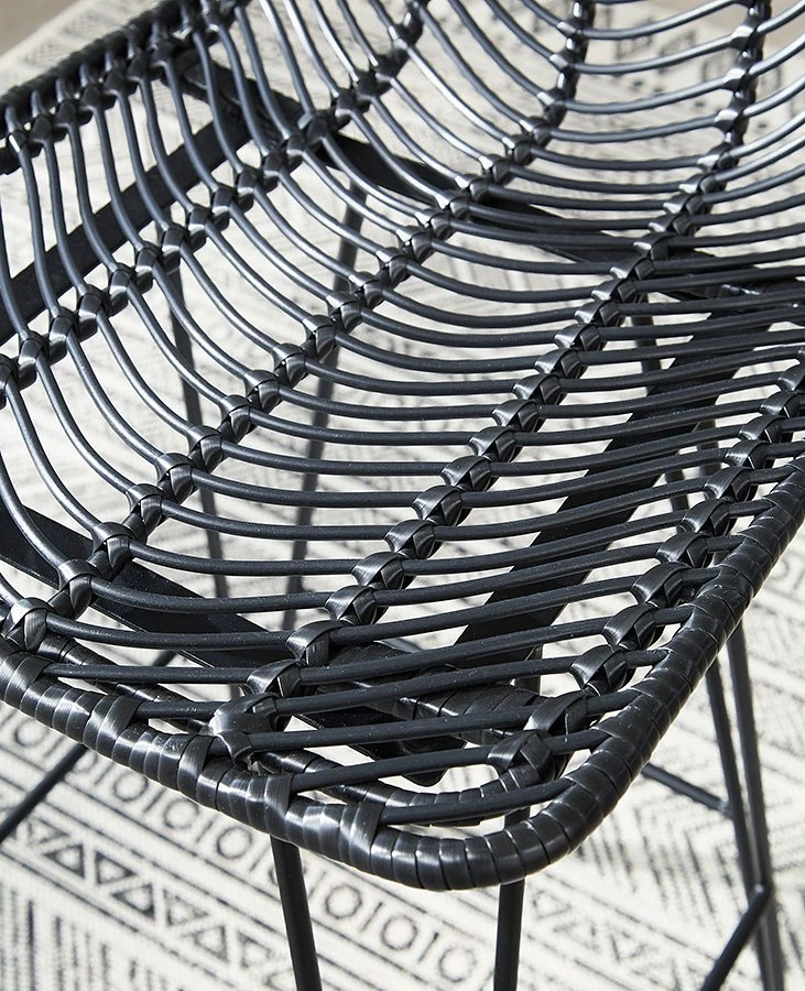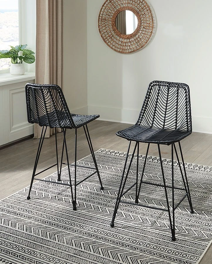 - OverviewOpen the door to sleek, organic style. This Angentree counter height bar stool by Signature Design sports an on-trend bucket seat, with black handwoven resin fiber infusing the piece with natural beauty. Balancing casual and contemporary approaches to seating, this bar stool brings an effortlessly curated look to your dining room.