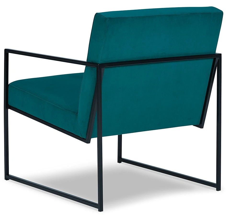 - OverviewDress up your reading nook or den with the decidedly contemporary styling of this Aniak Accent Chair by Signature Design. Velvet fabric in a teal tone provides a pop of soft color while remaining reserved and refined in appearance. A streamlined metal frame polishes off the posh design.