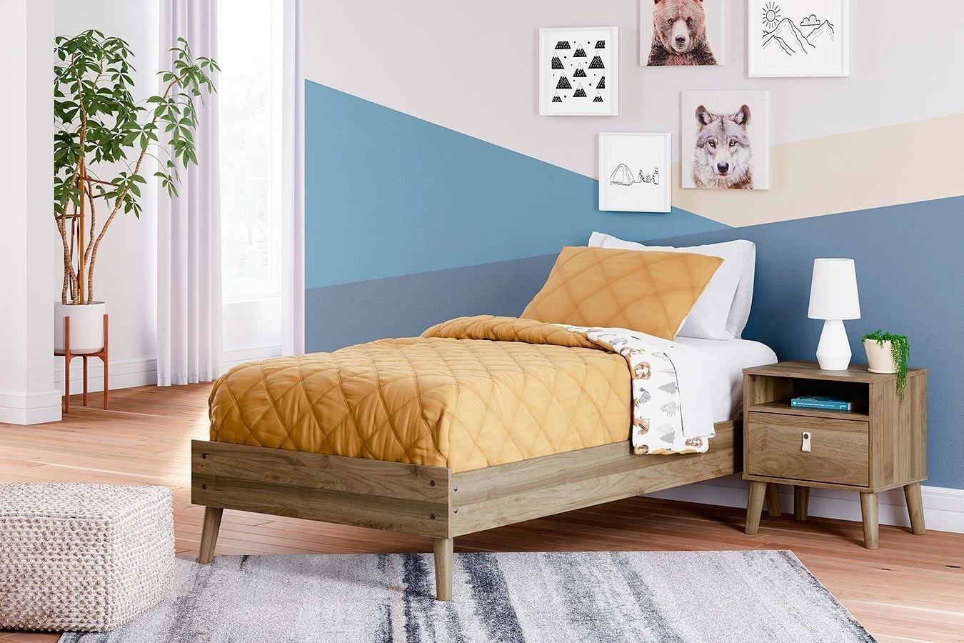 - Default Set Includes1 x Aprilyn Honey Youth Platform Bed (Twin) 1 x Aprilyn Honey Youth Platform Bed (Full) 1 x Aprilyn Honey One Drawer Nightstand