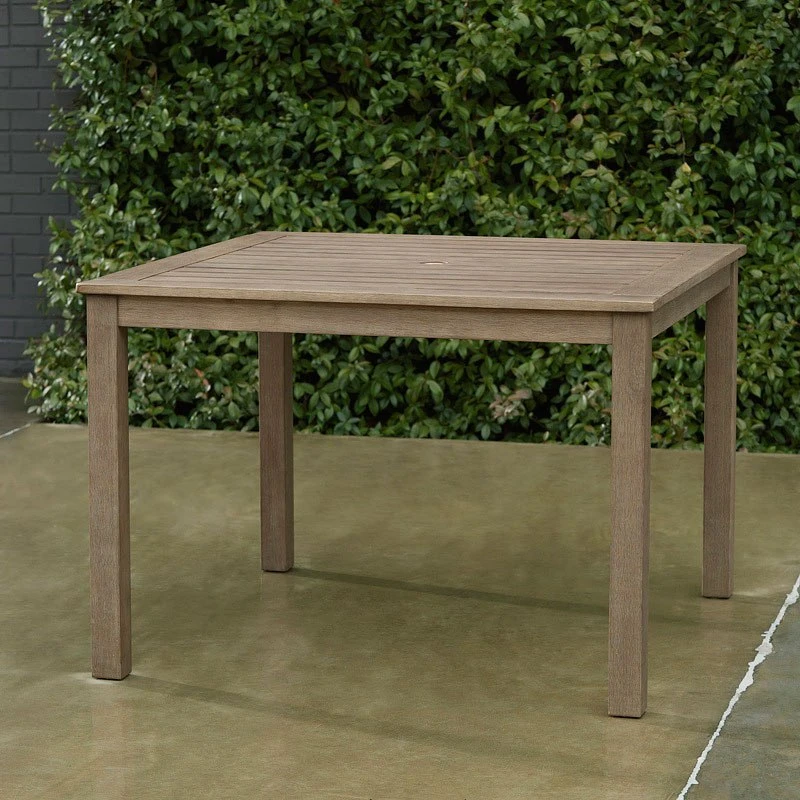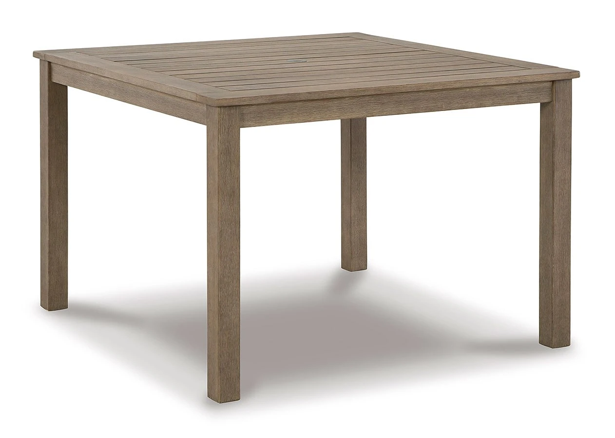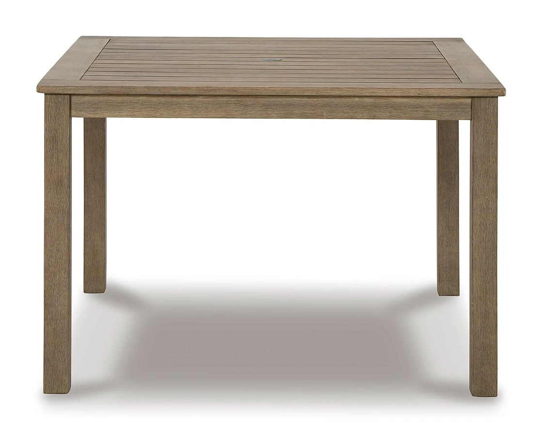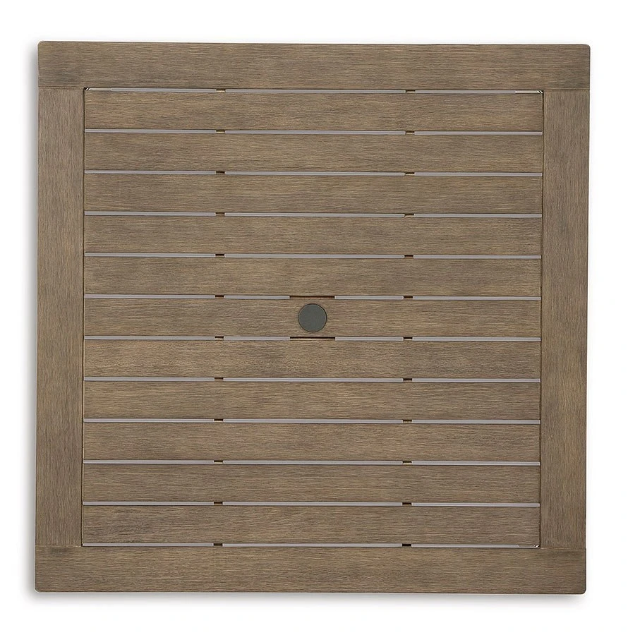 - OverviewVersatile in design, this Aria Plains Outdoor Dining Table by Signature Design brings a casually cool feel to your outdoor space. The neutral brown hue of the piece easily pairs with your current porch or deck decor. An umbrella hole lets you decide whether to add an umbrella on sunny days.