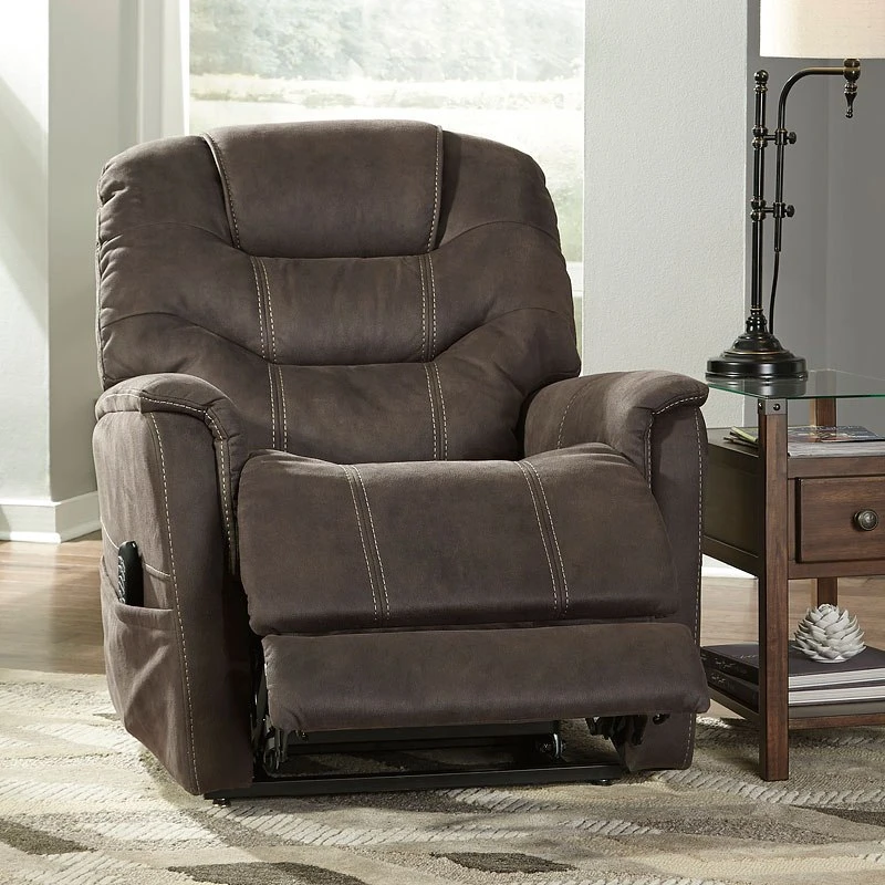 - OverviewTake charge of your seating with the Ballister Power Lift Recliner by Signature Design. Its easy power button motion control allows you the full spectrum of comfort – from a gentle lift-and-tilt for standing up to a lay flat design ideal for an afternoon snooze. Not much gets past the power adjustable headrest and lumbar support, or even the independent motor controls to get that just right position. You’ll always stay connected with the included USB charging port in the power control, and relish in the hours of versatile support that never stops giving.