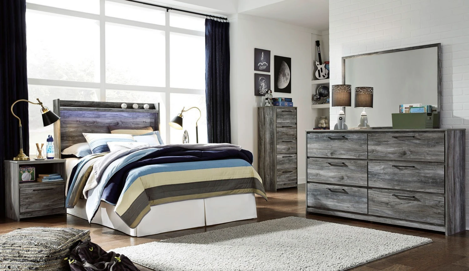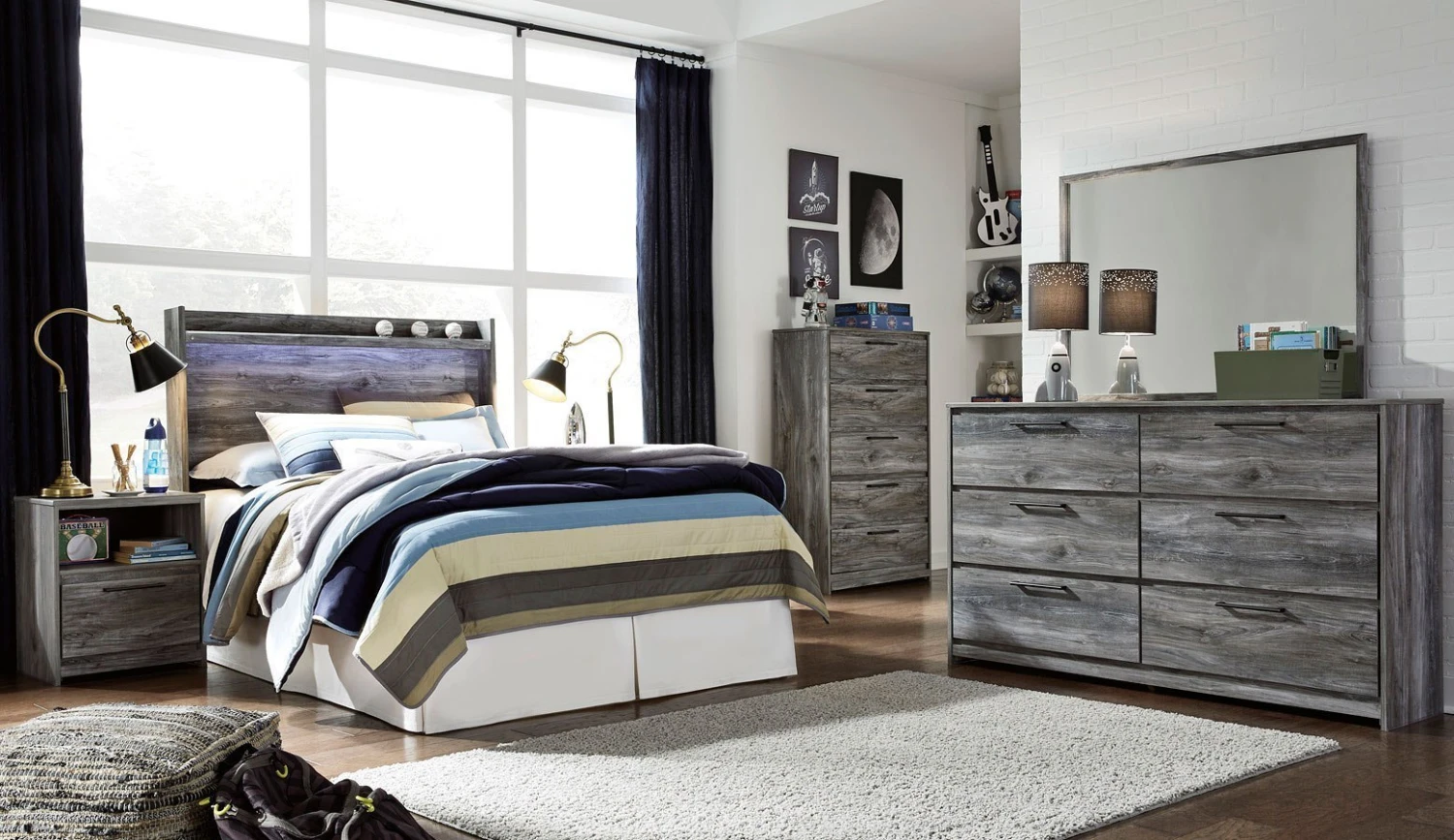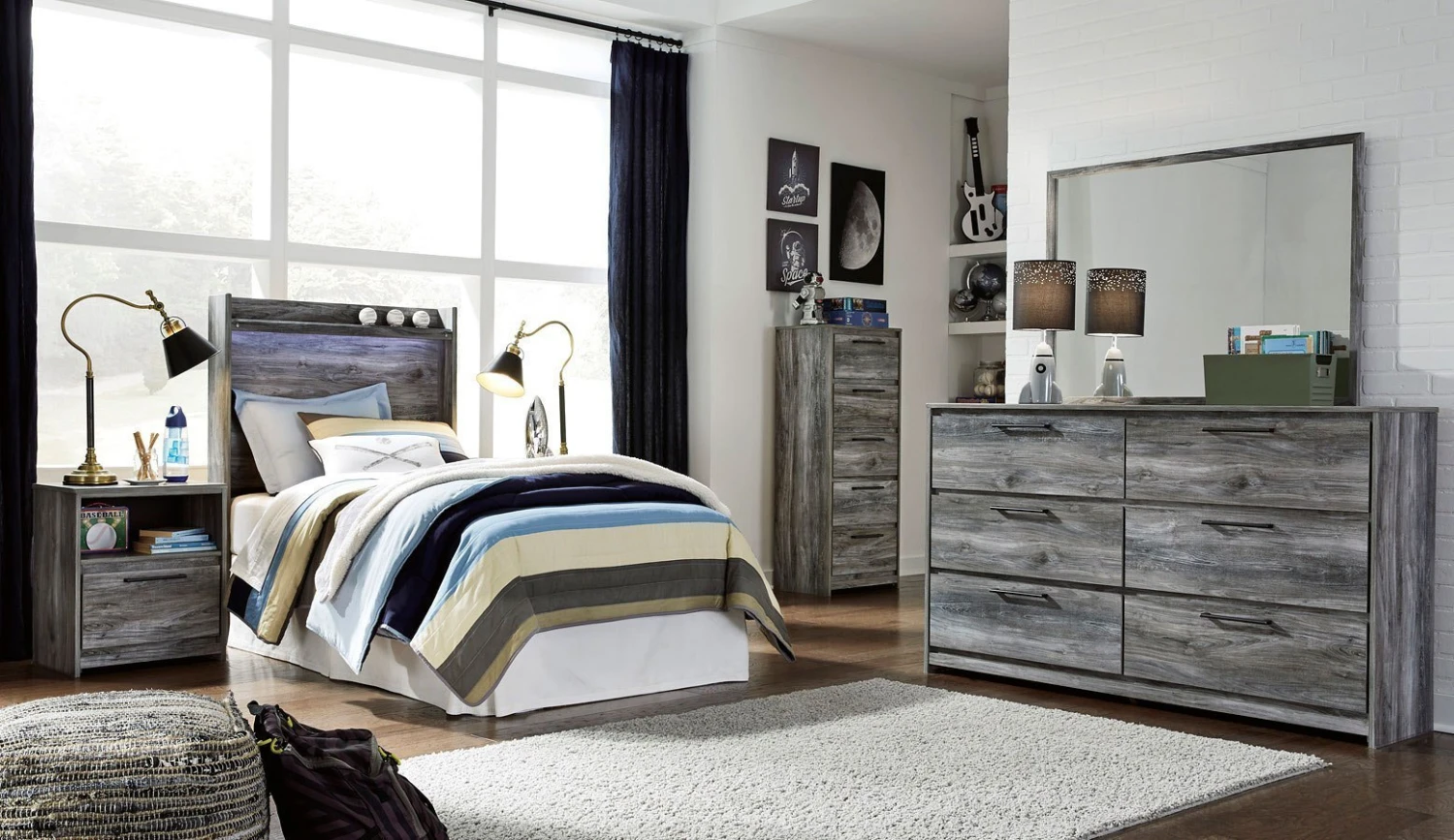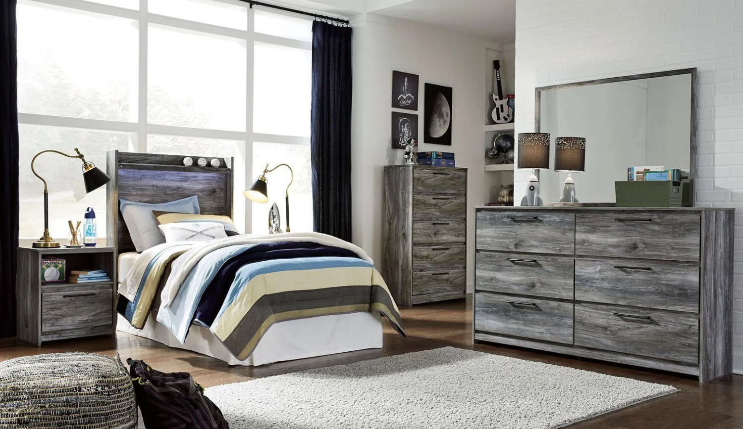 - OverviewBeachy style and lots of storage go hand in hand with this Baystorm Bedroom Collection by Signature Design. Its driftwood and surfer-inspired smoky finish create a rustic look that’s perfect for setting the scene of an island getaway. Clean lines and modern handles provide an authentic look to be admired for years to come.