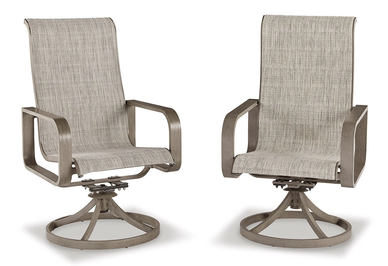 - Default Set Includes1 x Beach Front Outdoor Dining Table 8 x Beach Front Outdoor Sling Arm Chair 4 x Beach Front Outdoor Sling Swivel Chair