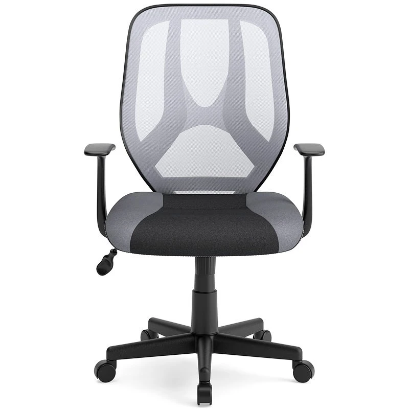 Gray mesh back, black and gray fabric seat