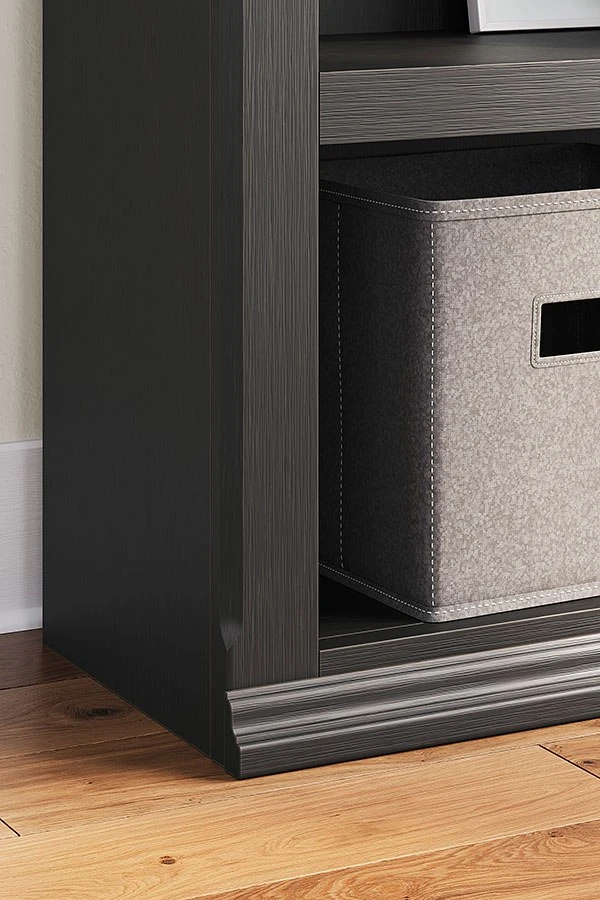 - OverviewMake a style statement with this Beckincreek large bookcase by Signature Design. Its traditional design is updated with an on trend vintage black finish. The bookcase’s five shelves add up to a well-organized workspace.