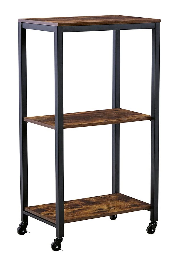 - OverviewImpress your party guests in style with this Bevinfield bar cart. It features a sturdy design, with black metal rails and an antiqued brown wood finish on the three shelves for a relaxed feel. Smooth-gliding casters offer easy mobility.