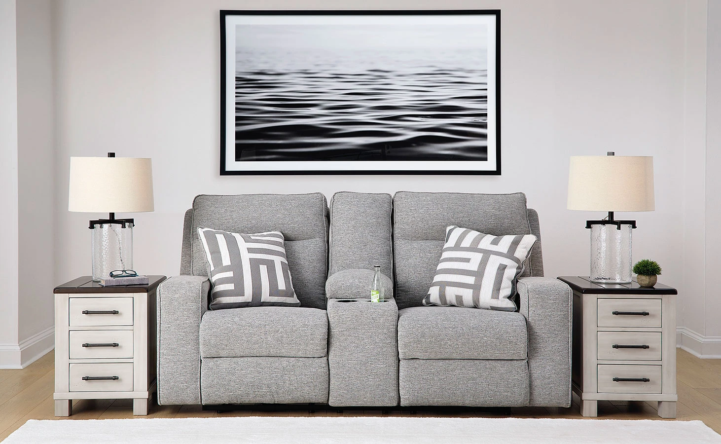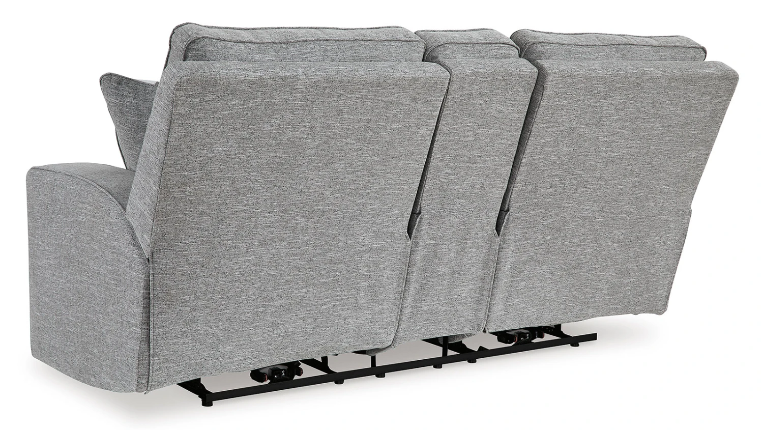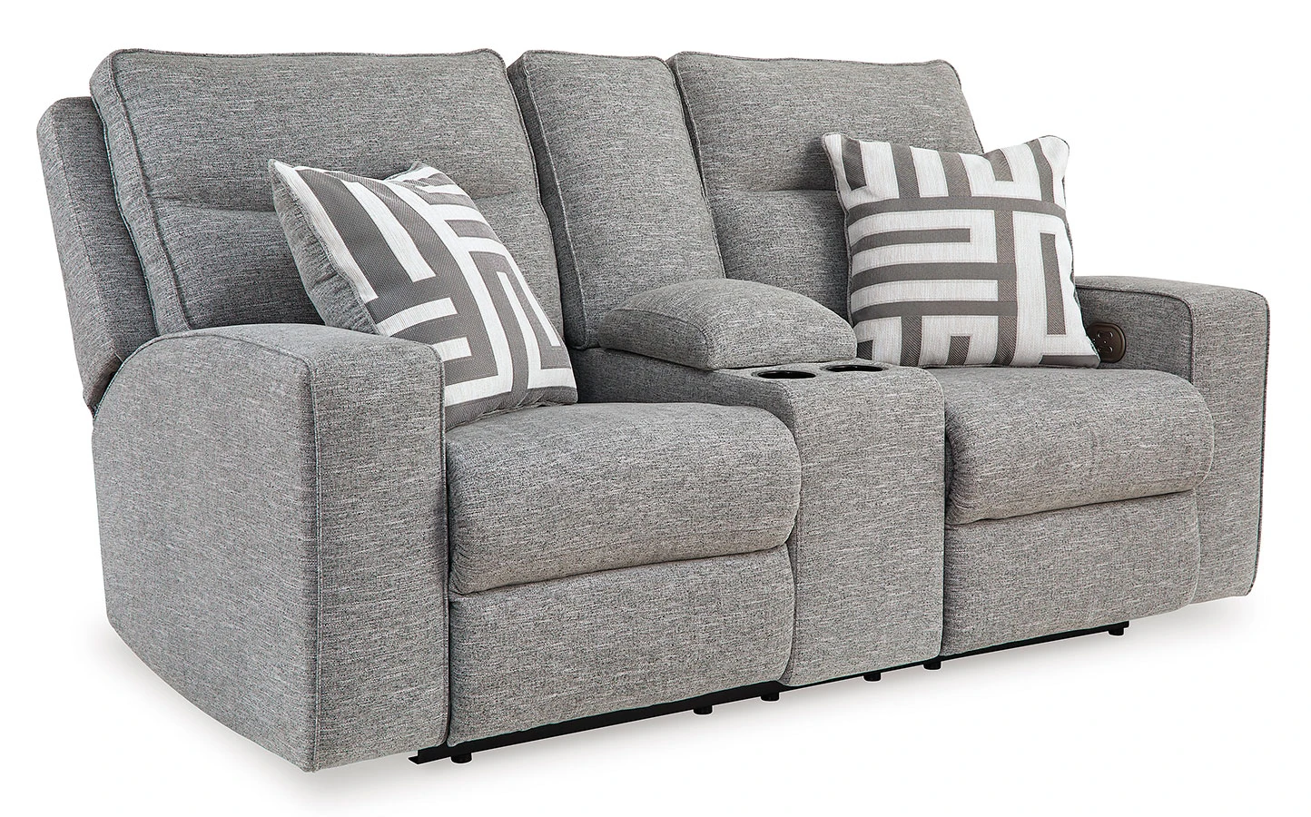 - OverviewIf style is the question, then this Biscoe Power Reclining Loveseat by Signature Design is the answer. Its clean-lined profile is beautifully contemporary. High-performance fabric and plump cushioning make it so easy to comfortably kick up your heels. The adjustable Easy View headrest allows a primo view of the TV, and the extended ottoman provides extra room to really stretch out. Simply sit back, chill out and recline away – this loveseat is designed to be your favorite seat in the house.
