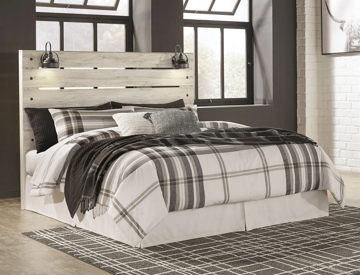 - OverviewWhat a delightful take on rustic industrial style. Whether modern loft or modern farmhouse, this Cambeck Bedroom Collection by Signature Design makes itself at home. The wispy whitewash palette enhances without covering the grain for that weathered look you crave. Love to read in bed? You’re sure to find the retro-chic light sconce and USB plug-ins on the open-slat style headboard such a bright idea.