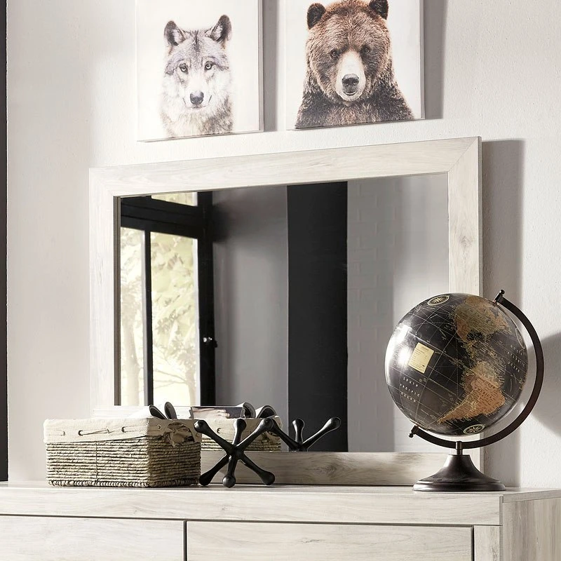 Wispy white finish over replicated oak grain texture - DepartmentDresser Mirrors