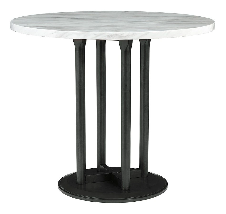- OverviewWhen nothing but the best will do, you’ll find this striking Centiar 42″ round counter-height table by Signature Design checks all the boxes. Taking a stance for ultra-contemporary design, this modern version of the classic pedestal table features the look of authentic Carrara marble at a price that’s so easy to live with. Its frame raises the bar on clean-lined style.