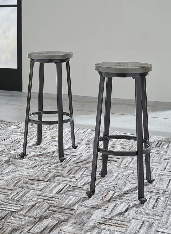 - OverviewTalk about a cool bar stool. This tall bar stool’s metal frame has a blackened pewter-tone finish and a distressed antique gray wash seat. The replicated plank design adds modern farmhouse feel that welcomes everyone home.
