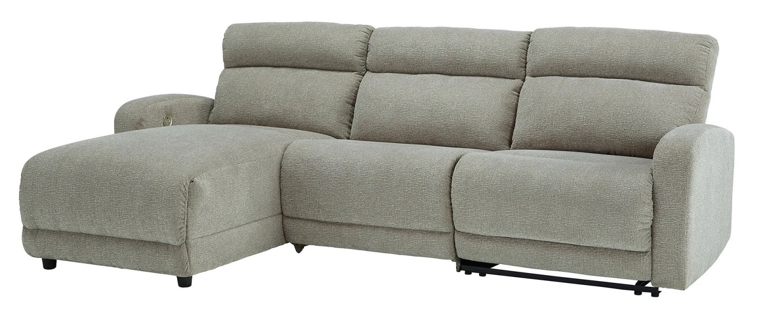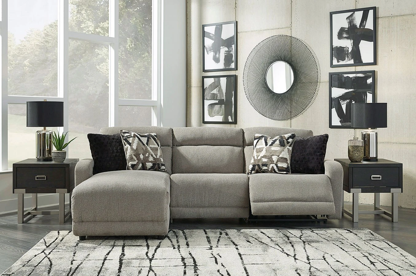 - OverviewThis Colleyville Power Reclining Sectional by Signature Design features contemporary style, polyester upholstery and Stone color. The power reclining mechanism features infinite positions for comfort and a USB charging port in the control.