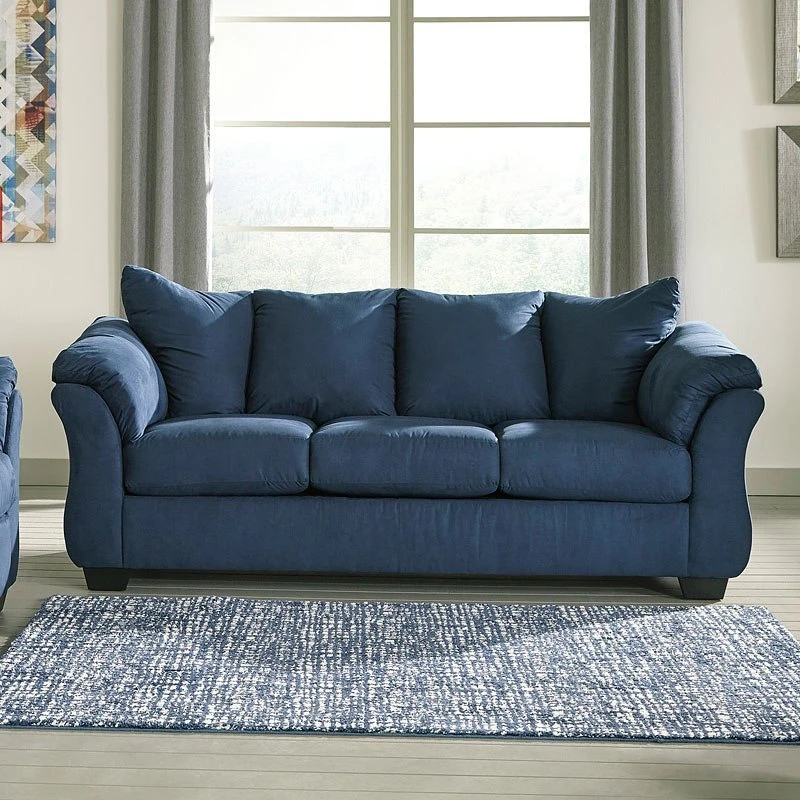 - OverviewTalk about fine lines and great curves. That’s the beauty of the Darcy Sofa by Signature Design – made to suit your appreciation for clean, contemporary style. A striking flared frame, comfy pillow top armrests and an ultra-soft upholstery that holds up to everyday living complete this fashion statement.
