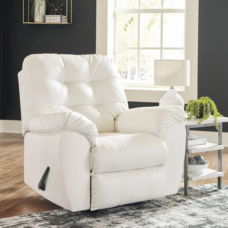 - Optional Items1 x Donlen White Rocker Recliner 1 x Donlen White Oversized Accent Ottoman 1 x Bayflynn End Table (Set of 2) 1 x Bayflynn Console Sofa Table