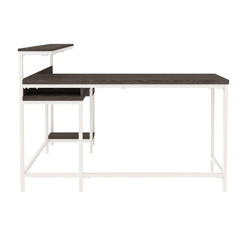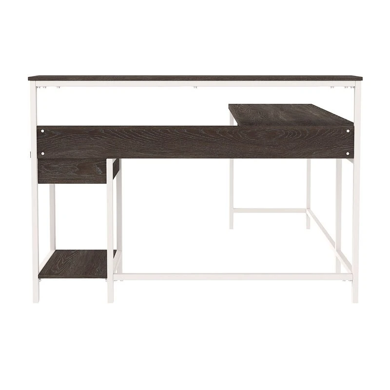 - OverviewMore than just a beauty to behold, this Dorrinson home office L-desk by Signature Design is designed to raise your productivity by packing more work area into less space. Sporting a two-tone finish, it’s ready to take a cool stance for modern farmhouse style. Pair with the bookcase (sold separately) for a well-organized home office.