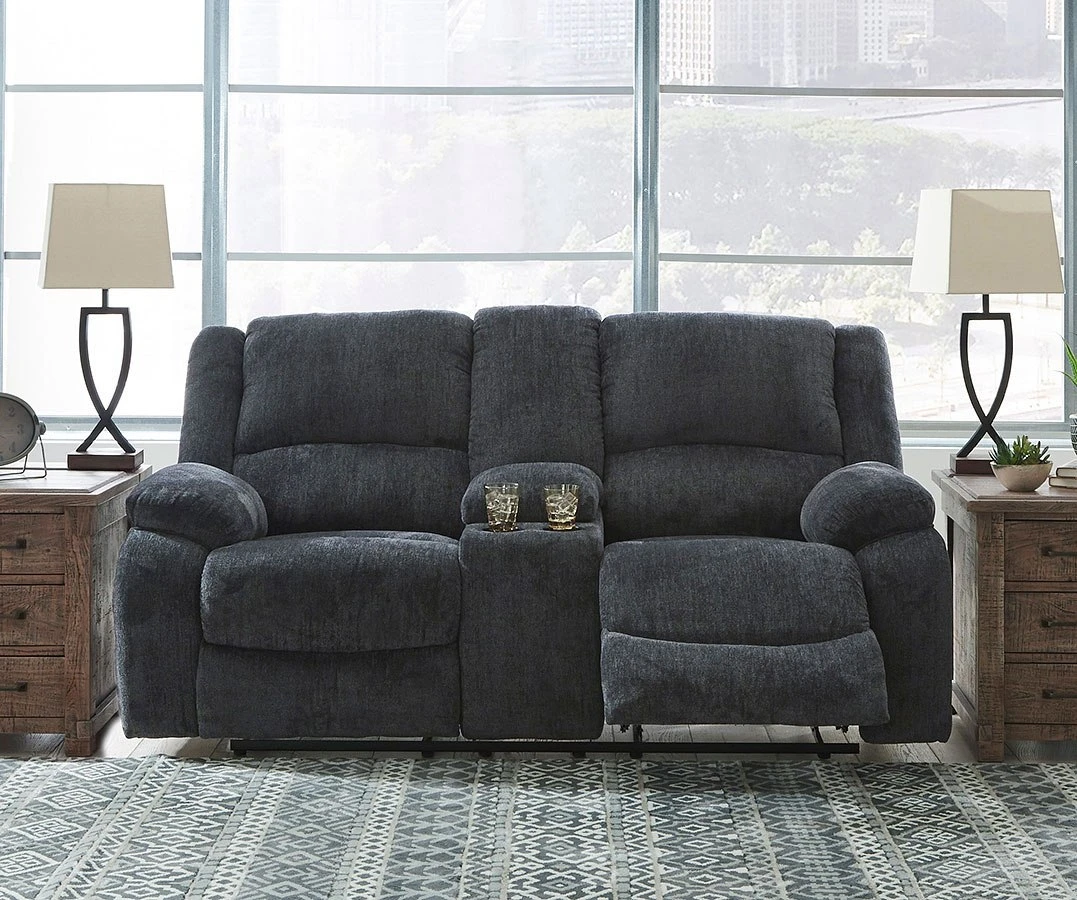 - Default Set Includes1 x Draycoll Slate Power Reclining Sofa 1 x Draycoll Slate Power Reclining Loveseat w/ Console