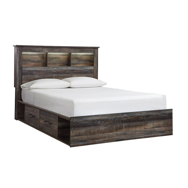 - Default Set Includes1 x Drystan Bookcase Bed w/ Side Storage (Queen) 1 x Drystan Bookcase Bed w/ Side Storage (King) 1 x Drystan Nightstand