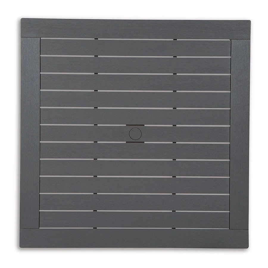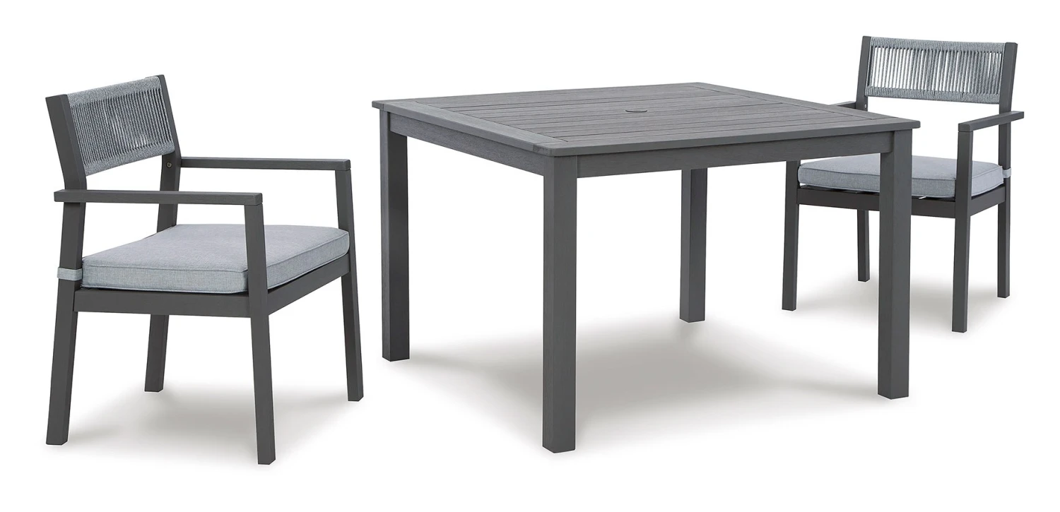 - OverviewThis Eden Town Outdoor Dining Set by Signature Design elevates your outdoor space with its classic, clean-lined design. A plank-effect tabletop provides visual intrigue, while the built-in umbrella hole makes it a breeze to shade yourself from sun and rain. An all-over neutral look in gray allows the dining table to slip seamlessly into just about any scene.