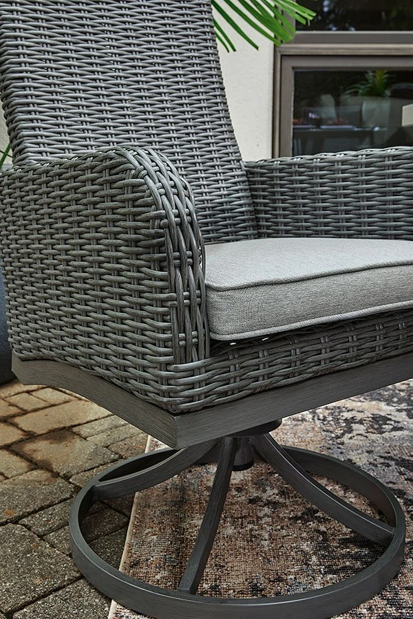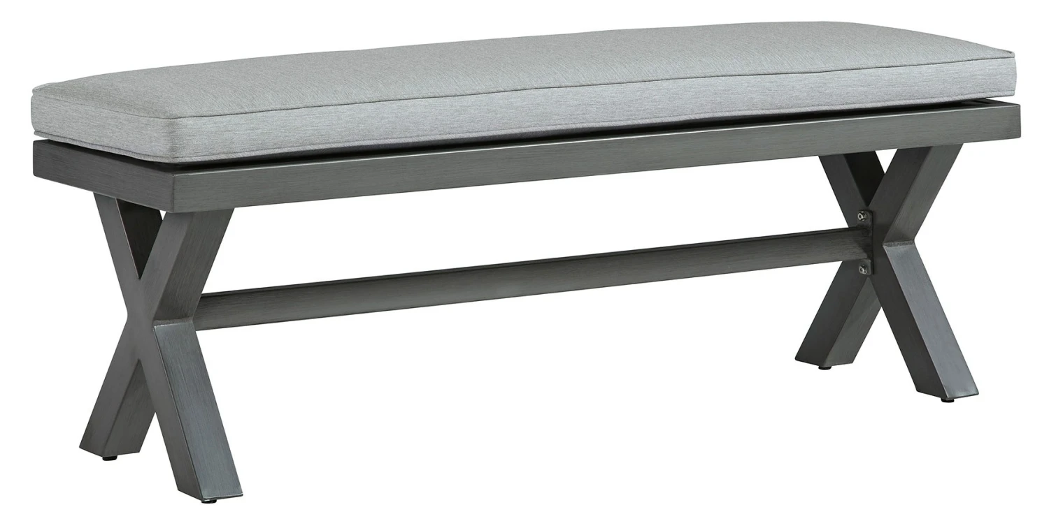 - OverviewAdd a distinguished touch of gray to your outdoor living space with this Elite Park Outdoor Dining Set by Signature Design. The head-turning table has a relaxed look that provides seasons of enjoyment. Its aluminum top combines the exceptional durability and weather resistance you need with the wood-look finish you love.