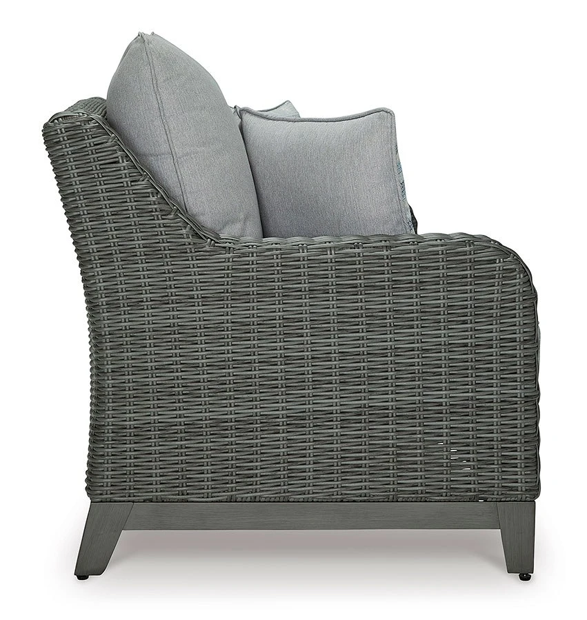 - OverviewAdd a distinguished touch of gray to your outdoor living space with this Elite Park loveseat by Signature Design. It’s made with resin wicker over an aluminum frame for a relaxed look that provides seasons of enjoyment. Rest assured, the thick seat and back cushions are wrapped in Nuvella high-performance fabric that’s fade-resistant, stain-resistant and a breeze to clean.