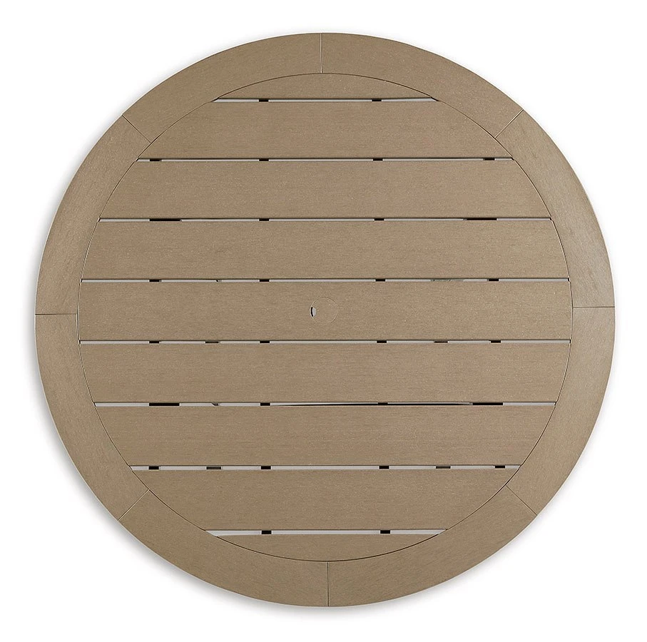 - OverviewRaise the bar on outdoor living with this Fairen Trail Outdoor Bar Table Set by Signature Design. Crafted for style, comfort and durability, this outdoor entertainment table caters with a standout two-tone finish that pairs a light driftwood-look and black finish for twice the interest. Round table design keeps everyone in the flow of conversation.