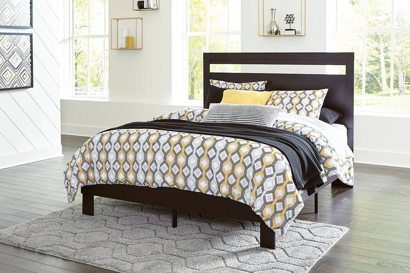 - OverviewIf you’re a fan of clean, crisp and contemporary interiors, rest assured this Flannia Platform Bed by Signature Design suits you. The linear profile is enhanced with a matte black finish with subtle replicated wood grain. Hard to believe such high style can be so attractively priced.