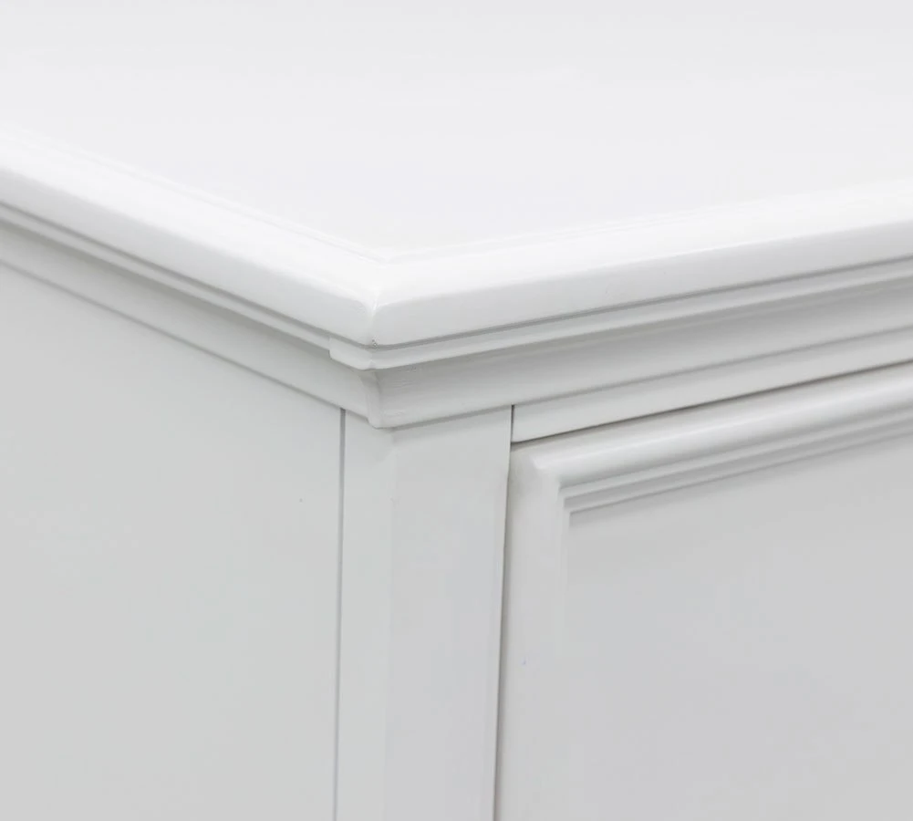 Drawers feature French/English dovetail construction with metal ball bearing side glides
