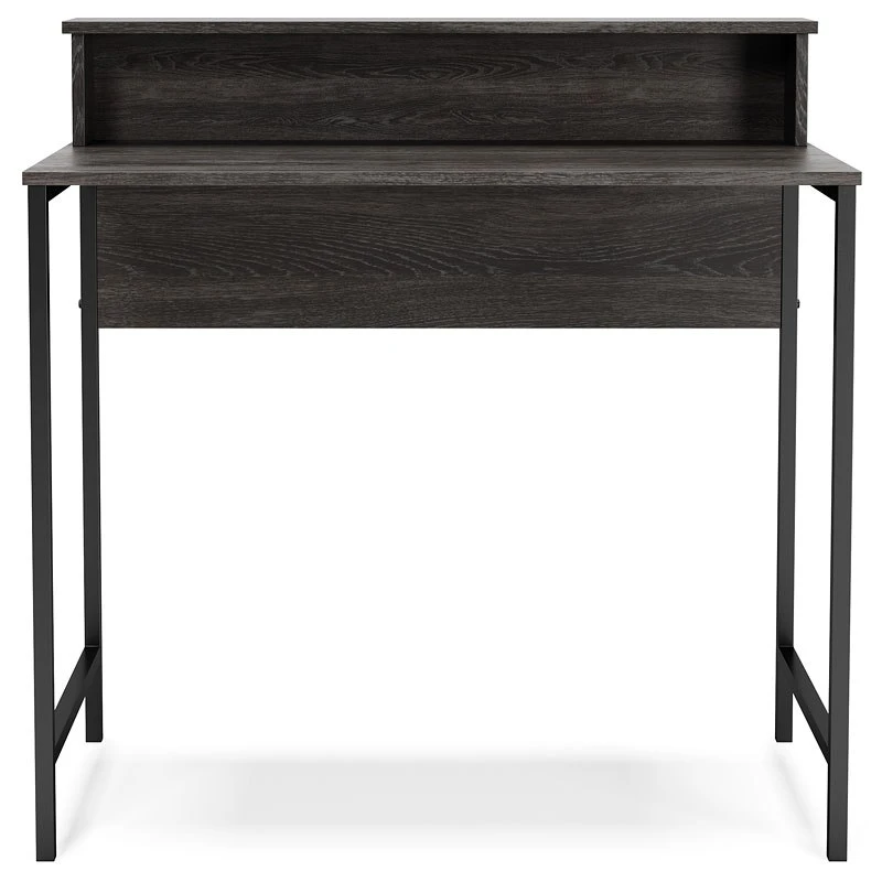 - OverviewLove an urban farmhouse aesthetic? Make it work to your advantage with this beautifully styled Freedan Desk by Signature Design. Anything but big and bulky, this simply striking choice in home office furniture is especially welcome when space is at a premium. Distinctive elements include a gray decorative wood grain laminate contrasted with black iron-tone metal. A handy shelf and modesty panel give this desk that extra special touch.