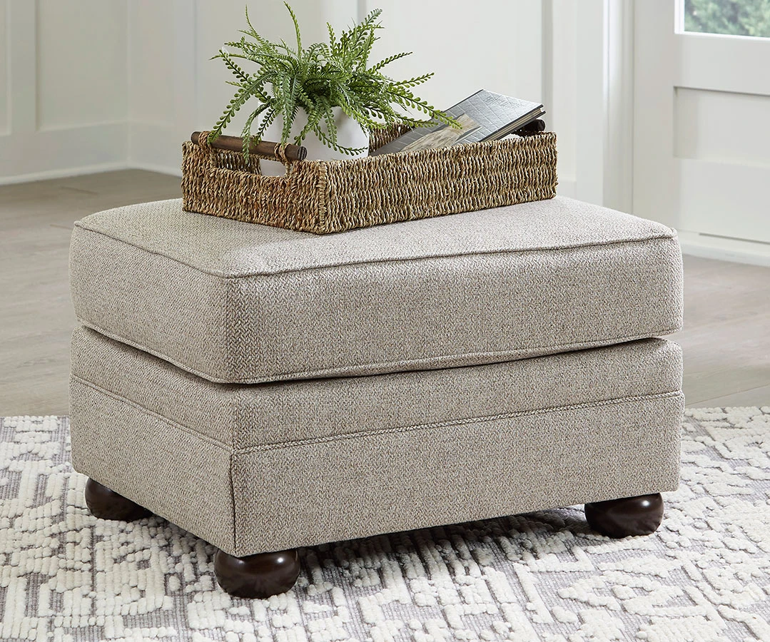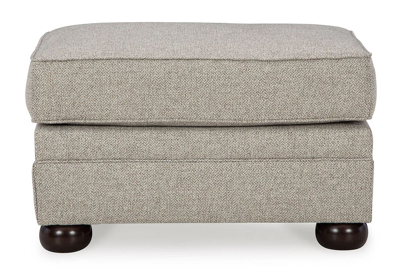 - OverviewInspired by the past but rooted firmly in the present, this Gaelon Ottoman by Signature Design complements your transitional seating area. Its versatile upholstery is delightfully detailed for a subtle herringbone effect. Designer touches like bun legs add traditional character. With this ottoman’s reliable style and comfort, all you need to do is kick back and relax.