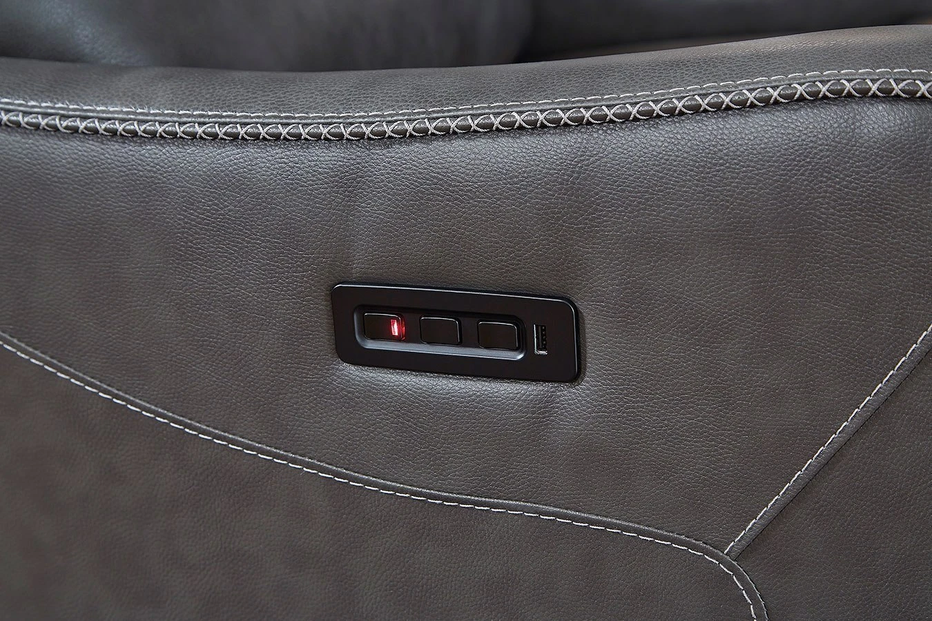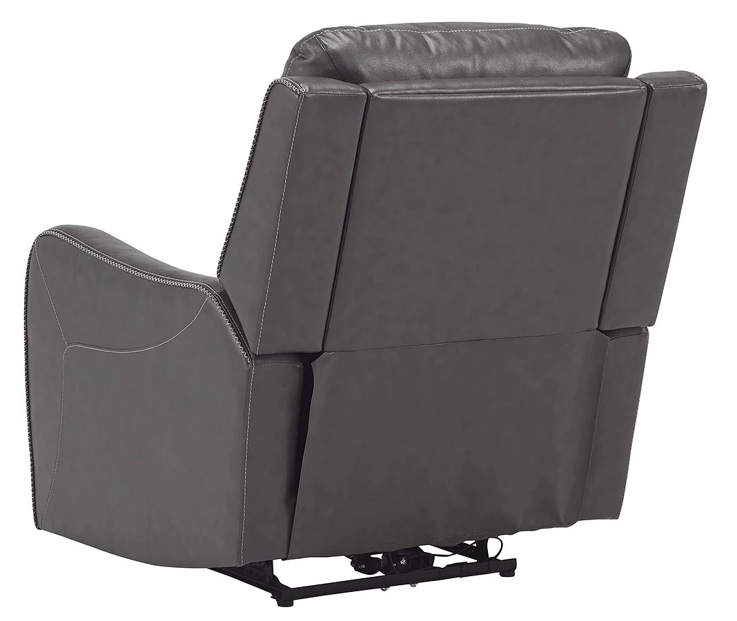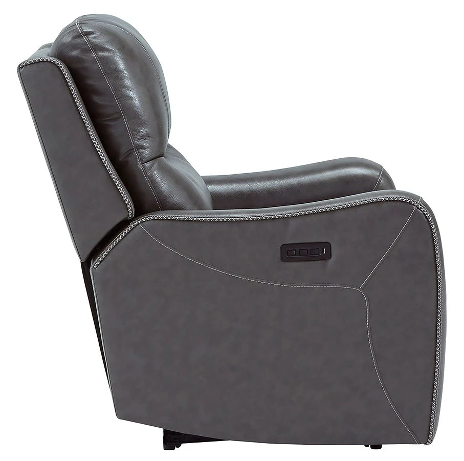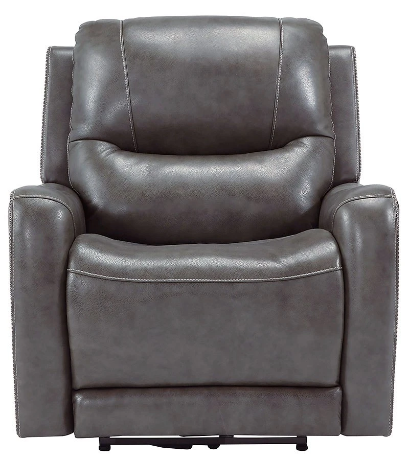 - OverviewThis Galahad Power Recliner by Signature Design might look crisp, clean and lean, but it’s packed with technologically advanced features that truly elevate the art of relaxation. Its zero-gravity mechanism lifts the ottoman four inches higher than traditional recliners (23″ off the floor) for better blood flow from your legs to your heart. With the touch of a button, let the stress of the day float away care of an air massage system (with three pampering settings) – or get warm and toasty thanks to a heated seat element. While ultra streamlined, this designer recliner doesn’t cut corners when it comes to quality. The seating area and armrests are upholstered in genuine leather for incomparable comfort – where it counts. Crosshatch stitching adds fashion-forward flair.