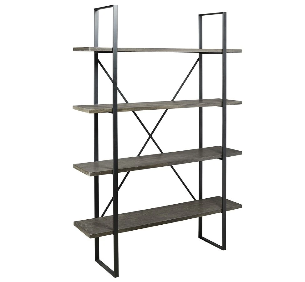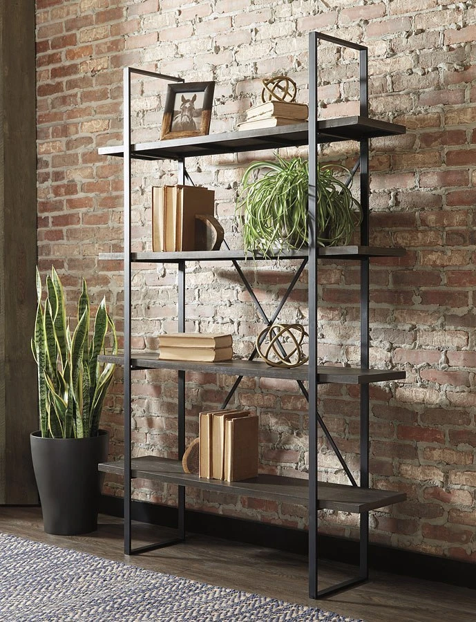 - OverviewGot books? Bring them to the Gilesgrove Bookcase by Signature Design. Industrial mix of dark wood and black metal brings trendsetting vibes to your home. Four sturdy shelves hold your belongings with ease. Mix in some metallic decor for a home office look you can’t refuse.