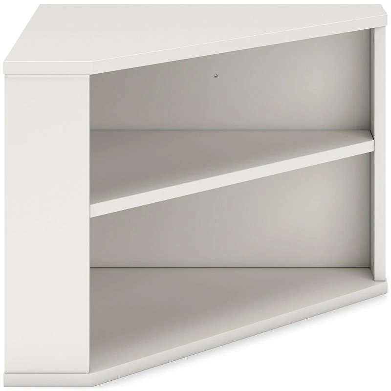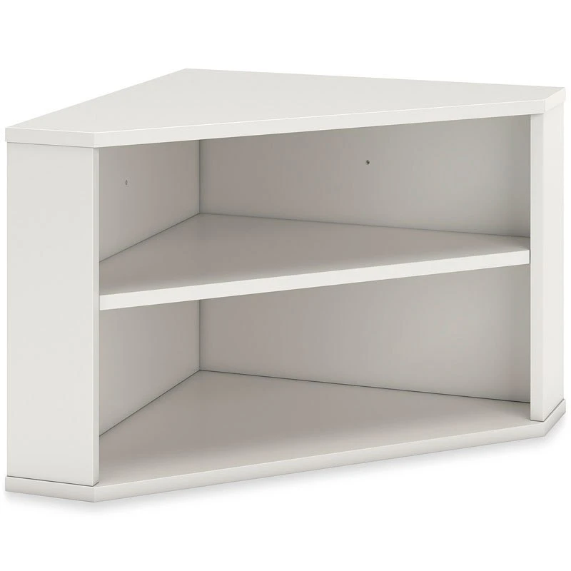 - OverviewClean-lined design takes center stage in this Grannen home office corner bookcase by Signature Design. Well-suited to small spaces, this bookcase leaves a small footprint as it seamlessly mounts onto corner walls. Two open shelves help store and display, while the crisp white finish suits a myriad of contemporary color palettes.