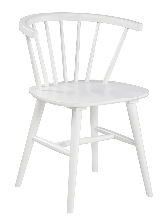 - OverviewBring light to your dining area with clean lines and a bright, white finish. The Grannen dining room chair by Signature Design sports a low spindle back with turned legs for beautiful simplicity. This functional piece marries minimalism with big style for a delightful combination.