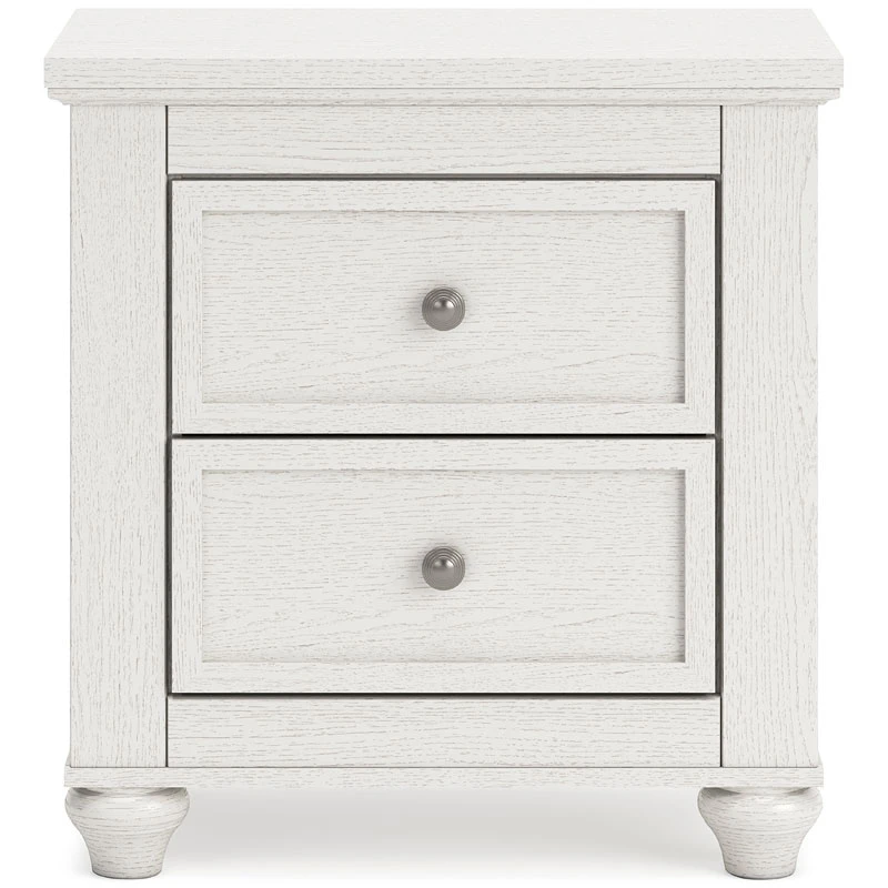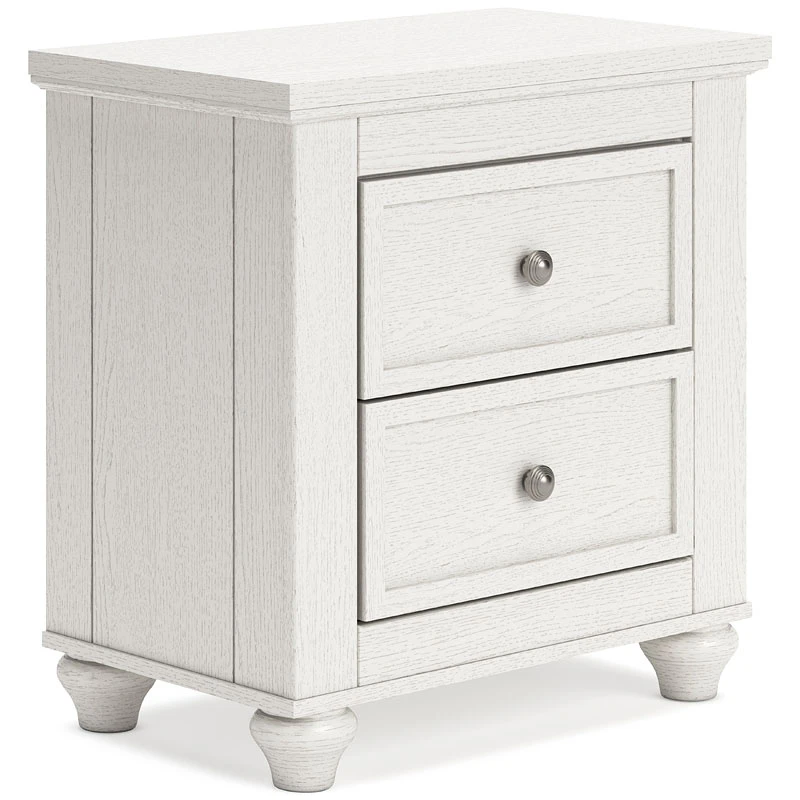 - OverviewBrighten up your bedroom with this Grantoni nightstand by Signature Design. The piece delights with a soft white finish and cottage quaint styling. When done in the right color, even a simple design can take on a fashionable flair.