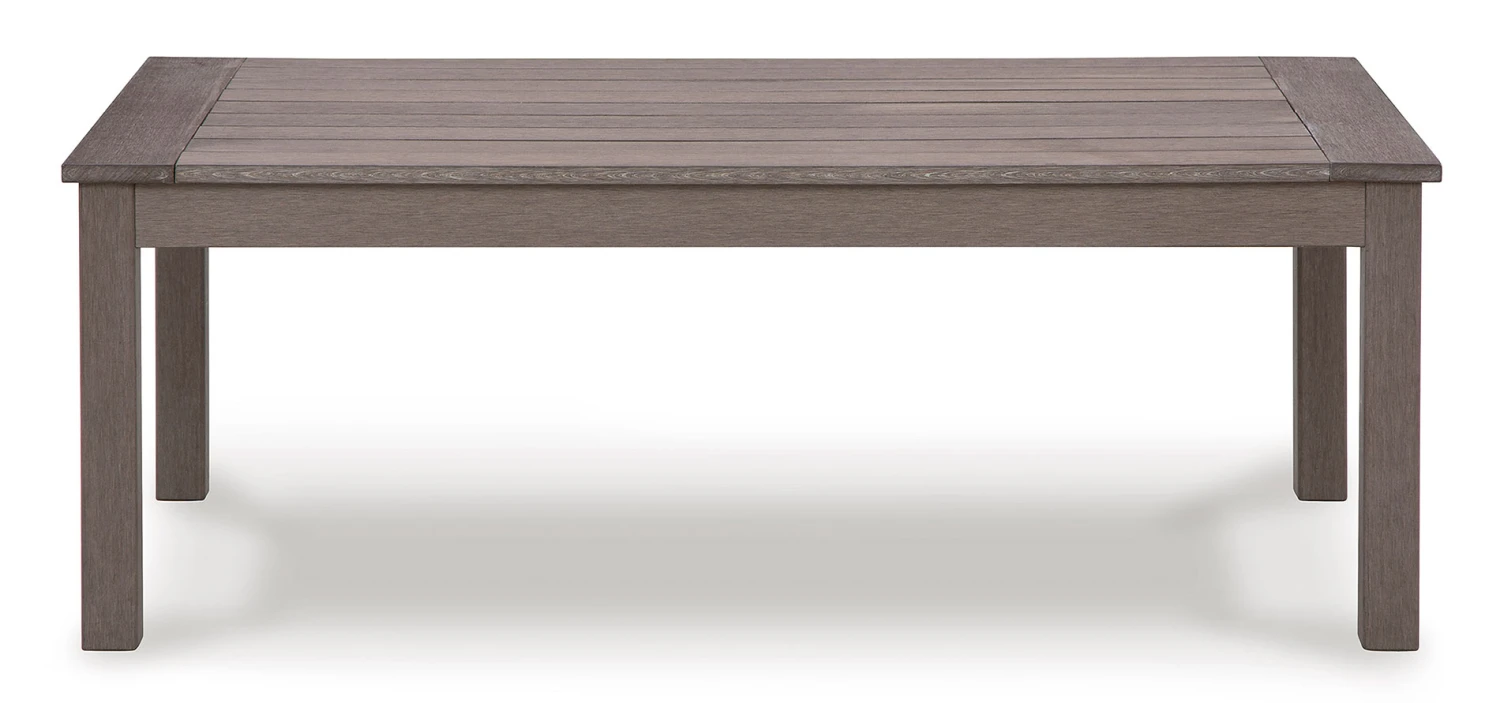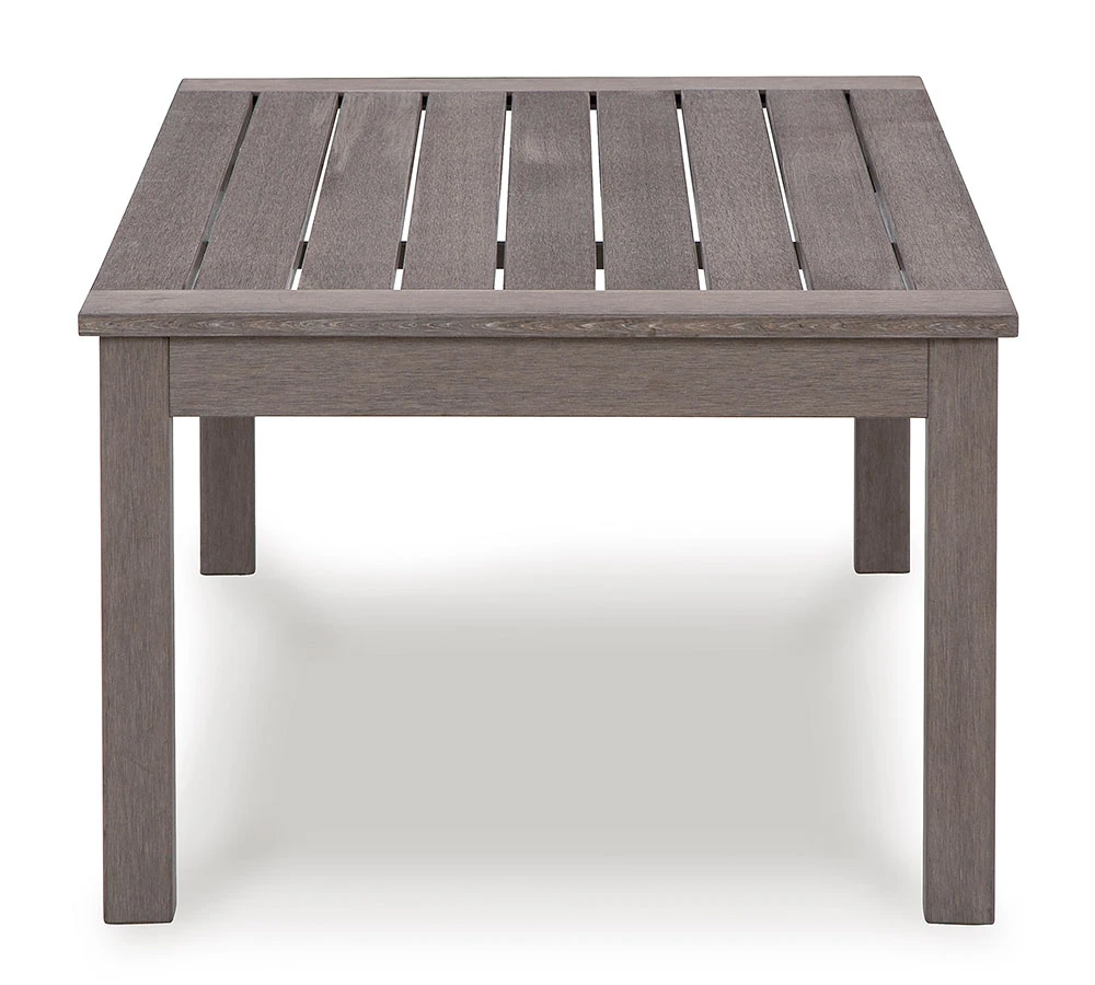 - OverviewThis Hillside Barn Outdoor Cocktail Table by Signature Design is a stylish outdoor piece with staying power. Built for longevity with Weatherwood, a synthetic material with the appearance of wood, it indulges you in contemporary design without sacrificing durability. Stunning form and can’t-miss function – with this table, endless days in the shade await.