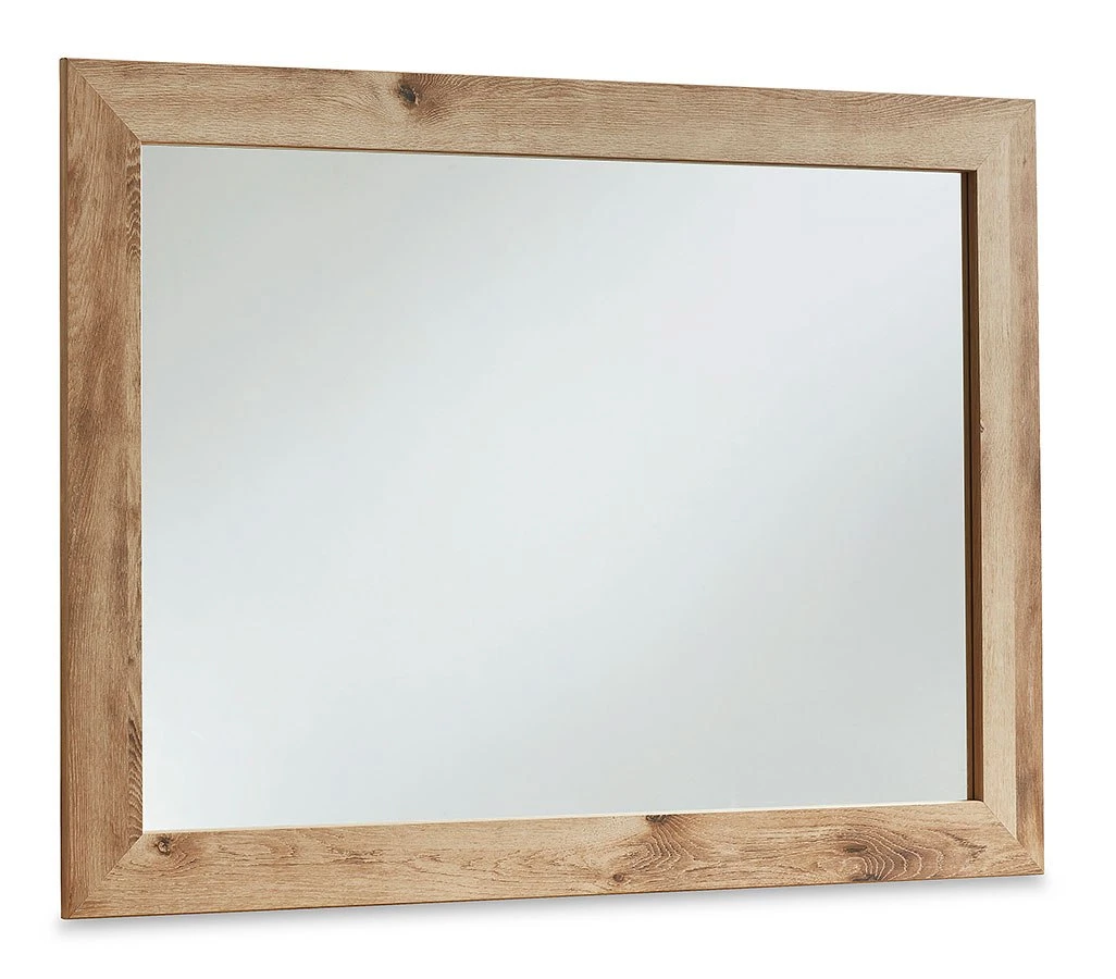 - OverviewInspired by natural beauty, refined to perfection. This Hyanna mirror by Signature Design brings cozy outdoor vibes to your bedroom with its warm and inviting golden rustic finish. Simple and streamlined, this versatile piece can be hung horizontally or vertically.