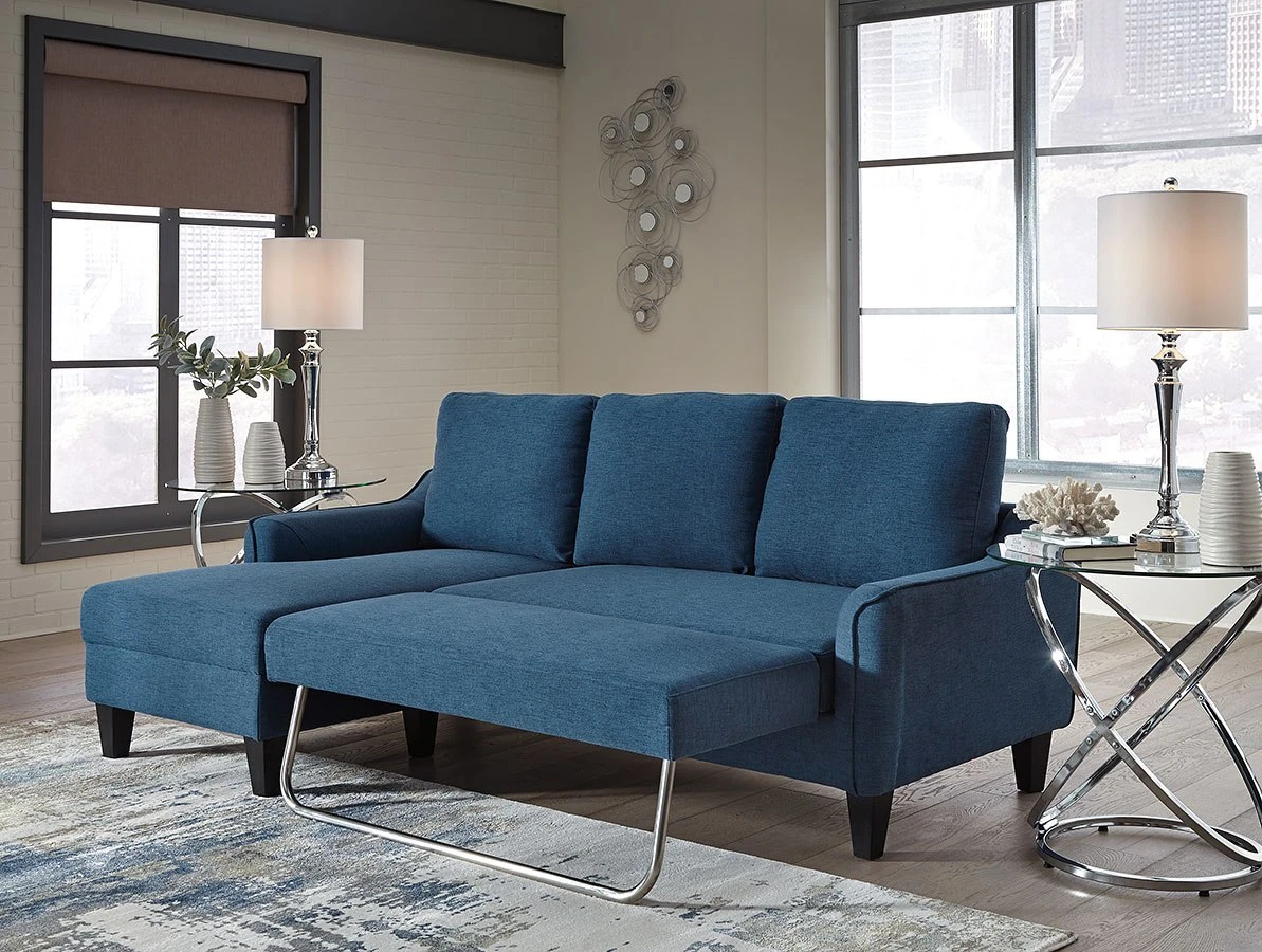 - OverviewSmall space living is easier than ever with the Jarreau sofa chaise sleeper by Signature Design. The soft cushions and oversized pillow backs are sure to be a comfortable seating treat. Sporting sleek arms and friendly apartment sizing, this sleeper makes a fashionable first impression, and is quick to convert into a sleeper with the included pullout cushion. Great to accommodate guests for an overnight stay.