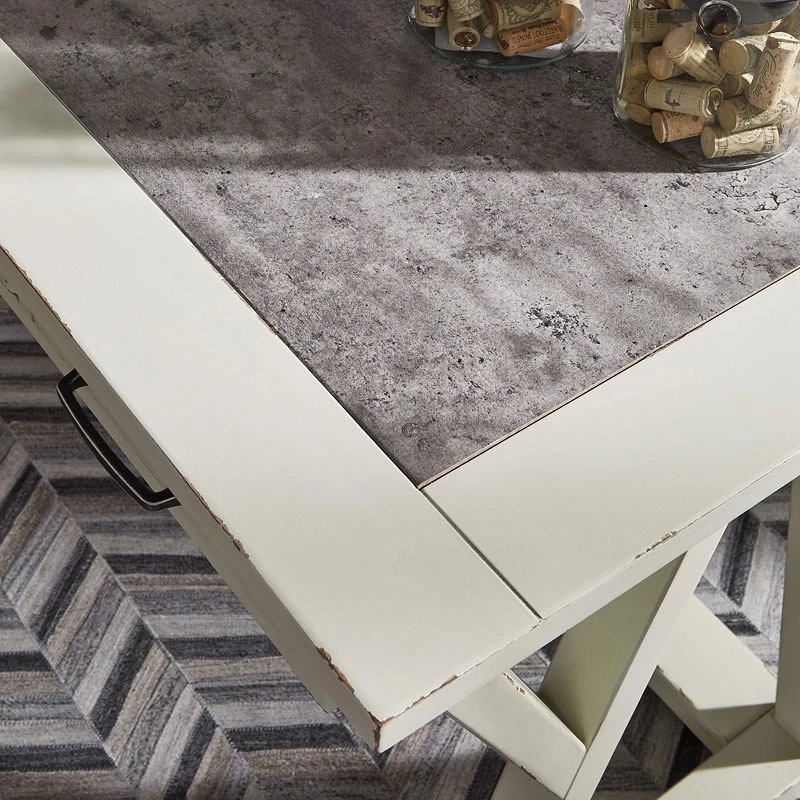 - OverviewCan’t decide between farmhouse or industrial style? Make a striking compromise with the Jonileene home office desk by Signature Design. Generously scaled and loaded with charm, it includes a trio of smooth-gliding drawers to help you stay organized. Faux cement top adds another layer of interest.