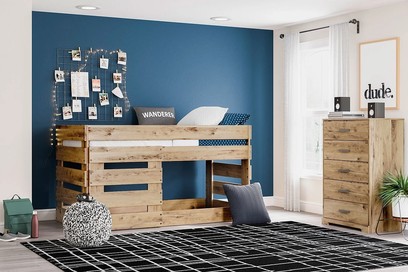 - OverviewSimply stunning in its versatility, this Larstin Twin Loft Bedroom Set by Signature Design takes a relaxed approach to rustic style. Its golden finish has a universal appeal that’s oh-so inviting. The lofted design leaves space for storage or play underneath, grounding the look with a hint of modern flair and function. Whether it’s in a guest room or kids bedroom, this warm and welcoming collection complements a variety of settings.