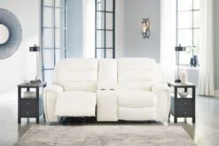 Warlin White Power Reclining Console Loveseat W/ Adjustable Headrests