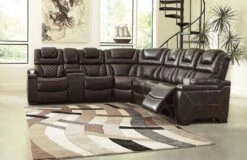 Warnerton Chocolate Power Reclining Sectional Set W/ Adjustable Headrests