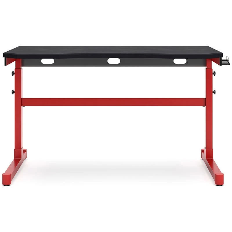 - OverviewWork smarter (and look cool doing it) with the new-age efficiency of this Lynxtyn adjustable height home office desk by Signature Design. Its streamlined design is ideal for gaming or as a general workstation. This super-sleek yet fully-loaded home office desk has a mouse pad surface cover and three height options for ultimate efficiency. The fantastic features also include a headset hanger conveniently mounted on the side, as well as a raceway tucked underneath for managing all your cords.